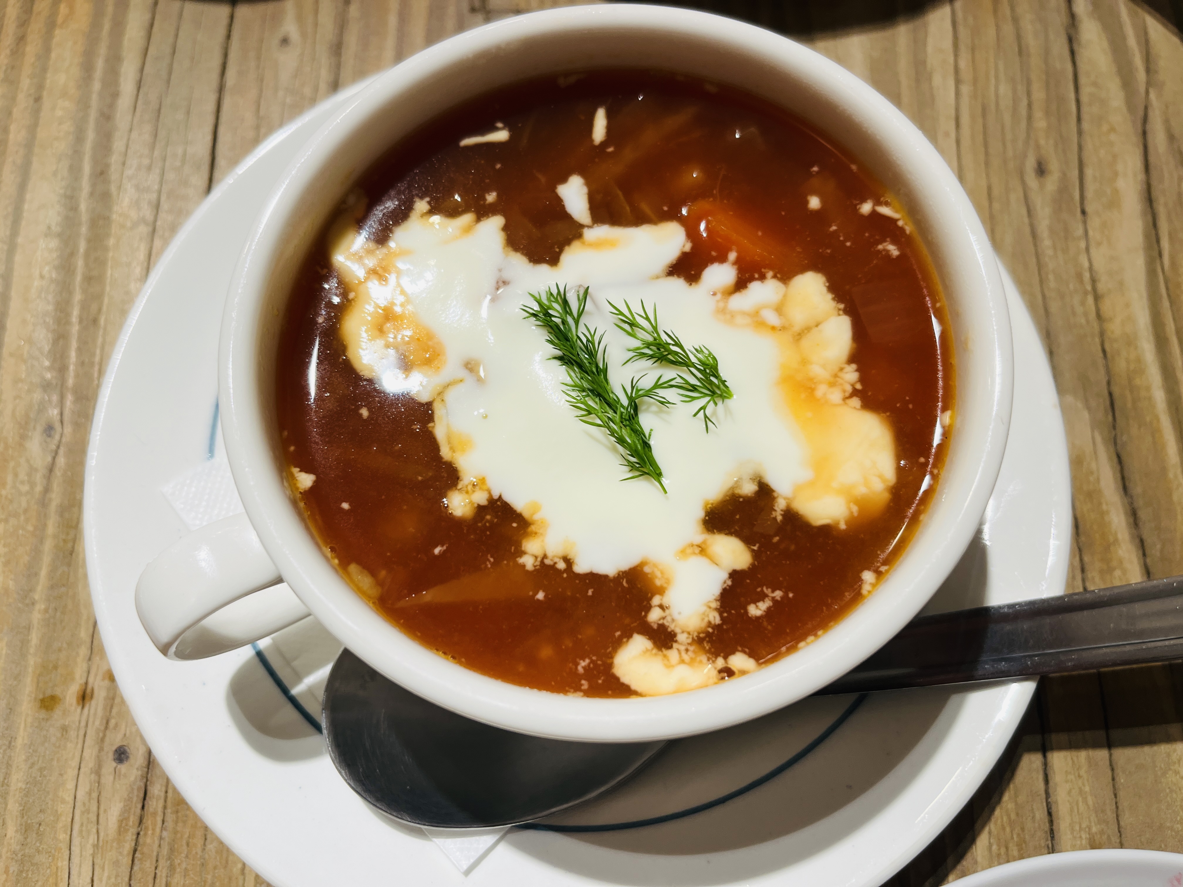 サワークリームが入ったビーツのスープ