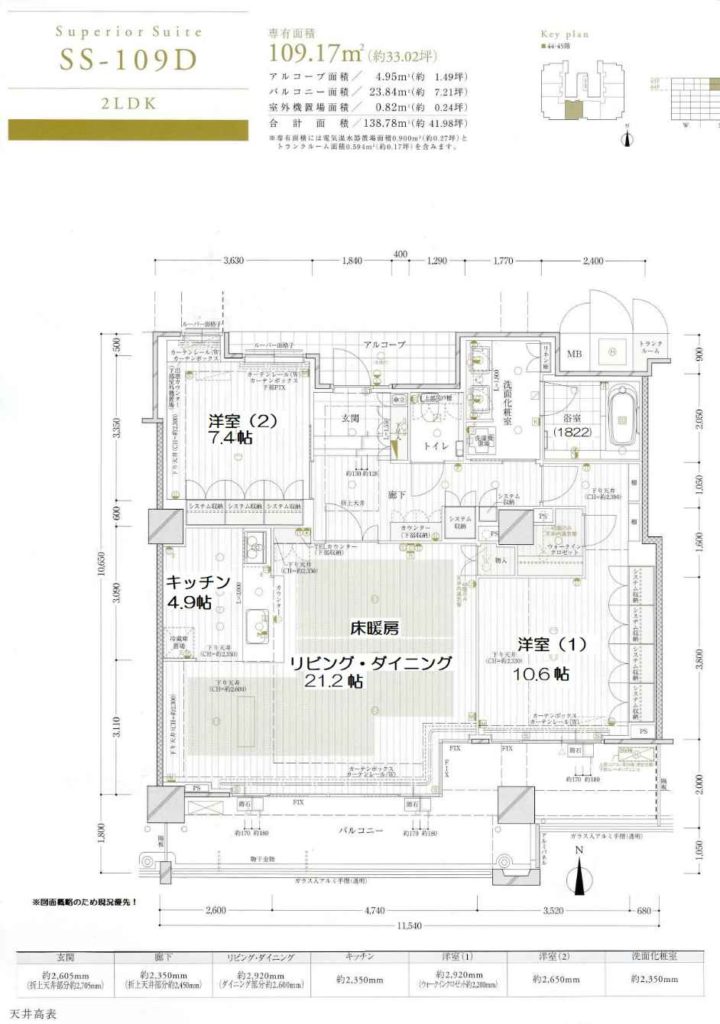 | 面積 | 109.17m² | 計測方式 | 壁芯 |